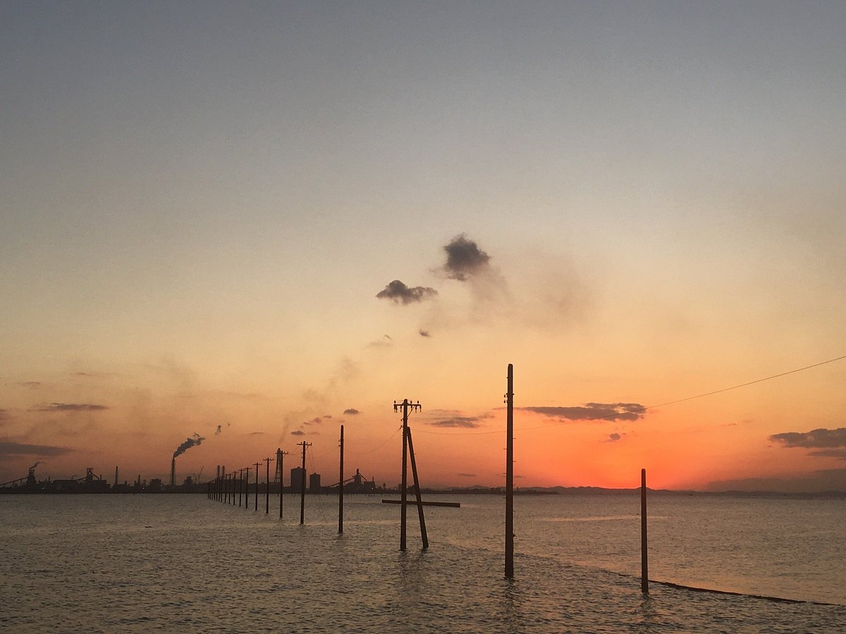 Egawa Beach, located in Kisarazu, Chiba Prefecture, is not a typical sandy beach for swimming but rather a unique coastal area characterized by marshlands and a striking visual feature: a line of wooden power poles extending directly into the sea. This distinctive landscape, especially when partially submerged at high tide, creates a surreal and photogenic scene that has made it a notable spot for photography enthusiasts.