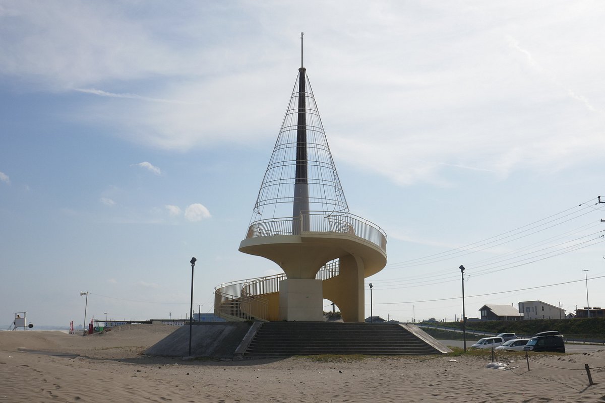 The Kujukuri Beach Tower is a modest structure situated along the extensive Kujukuri Beach, one of Japan's longest sandy beaches. While not an architectural marvel, it serves as a convenient landmark and a spot to take in the coastal scenery, particularly popular with those interested in the beach's surfing potential.