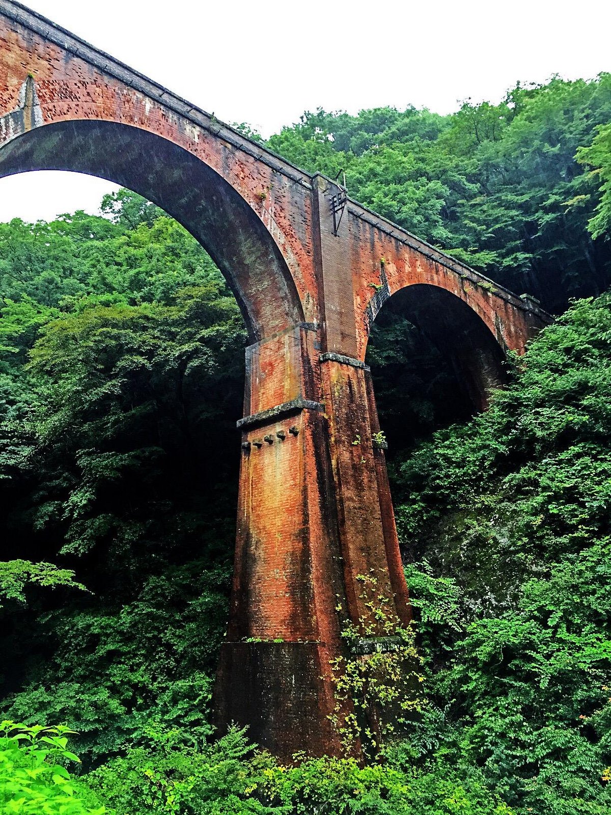 The Usui Daisan Kyoryo Bridge, often referred to as Meganebashi (Spectacles Bridge) due to its distinctive arch design, is a historic brick railway bridge completed in 1892. It is a significant example of Meiji-era engineering, once part of the Usui Pass railway line, which was a crucial link connecting Tokyo with the Japan Sea coast. Today, it stands as a testament to Japan's early industrialization and offers a picturesque setting for visitors.