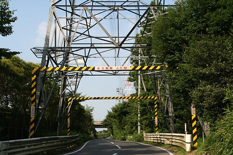 Watari-Kashiwabara's Pylon 24 is an electricity pylon located in Mito, Ibaraki Prefecture, Japan. Its significance lies in its unique construction: it is reportedly the only electricity pylon in the world built directly over a two-lane road. Part of the powerline connecting the Watari and Kashiwabara substations, this 45-meter-tall structure carries 12 conductors and two ground wires on seven crossbars, making it a curious example of engineering adaptation.
