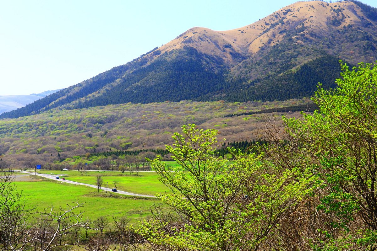 Senomoto Kogen is a highland plateau situated in the Aso region of Kumamoto Prefecture, Japan. It is primarily recognized for its expansive, undulating landscapes, often described by visitors as "hairy mountains" due to the unique texture of the vegetation. The area serves as a popular spot for scenic drives and offers numerous vantage points for photography, particularly appealing to those who appreciate natural beauty and open vistas.