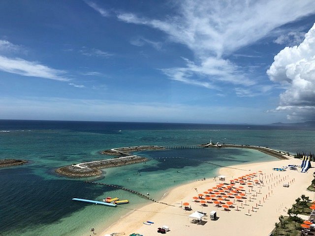 Sun Marina Beach is a well-regarded beach in Onna-son, Okinawa, known for its pristine conditions and family-friendly atmosphere. While often linked to the Sheraton Sun Marina Resort, it is generally accessible to the public, offering a beautiful stretch of coastline along the East China Sea. Its calm, clear, and shallow waters, protected by an embankment, make it a safe and enjoyable environment, particularly for children.