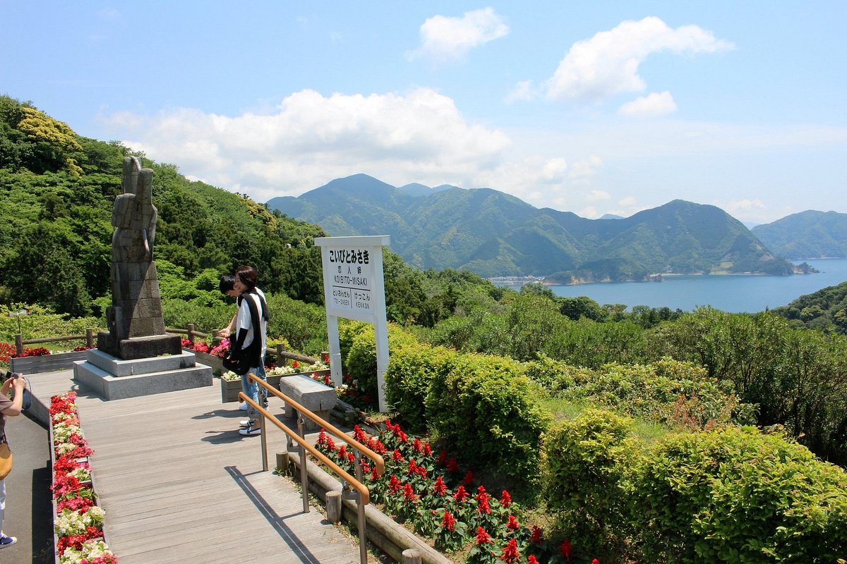 Koibito Misaki Cape, also known as Lover's Cape, is a scenic coastal spot on the Izu Peninsula, renowned for its romantic legend and panoramic ocean vistas. It's a place where couples often come to ring the 'Lover's Bell' and enjoy the beautiful scenery, which on clear days can include distant views of Mount Fuji. The cape is significant for its natural beauty and the charming, somewhat kitschy, romantic elements that make it a unique stop.