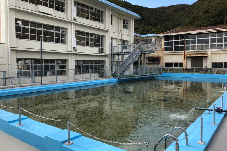The Muroto Schoolhouse Aquarium is a distinctive attraction located in Muroto, Kochi Prefecture, Japan. It ingeniously repurposes a defunct elementary school, transforming its swimming pools into large tanks for marine life and its classrooms into exhibition spaces. This innovative approach makes it a significant example of adaptive reuse and a unique destination for those interested in marine ecosystems and unconventional museums.