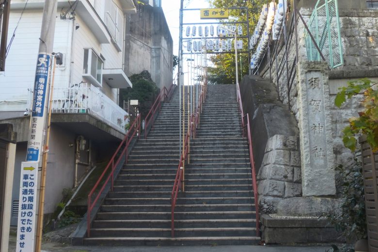 The Suga Shrine Staircase is easily accessible by Tokyo Metro. The closest station is Yotsuya-Sanchome Station on the Marunouchi Line. From there, it's a short walk of approximately 5-10 minutes. Alternatively, Yotsuya Station, served by the JR Chuo Line, Marunouchi Line, and Namboku Line, is also within walking distance, though slightly further. To find the staircase, walk down Shinjuku Dōri from Yotsuya-Sanchome, make a left, and then another left at the crossroads. Public transport is highly recommended as parking in the residential area is limited.