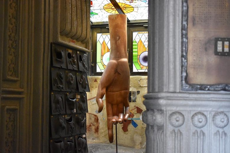 Visitors consistently praise the building's unique and imaginative design, highlighting its distinctiveness from typical Tokyo architecture. Many are captivated by the detailed artistry visible even from the street. The ground floor, which houses an art gallery, an antique shop, and a beauty salon, offers a more immersive experience. Here, guests can encounter a mosaic recreation of the Gorgoneion, abstract murals, and colorful stained-glass windows, creating an atmosphere reminiscent of a Gothic cathedral. The enigmatic sculpture of a hand pointing downwards in the lobby often sparks curiosity.