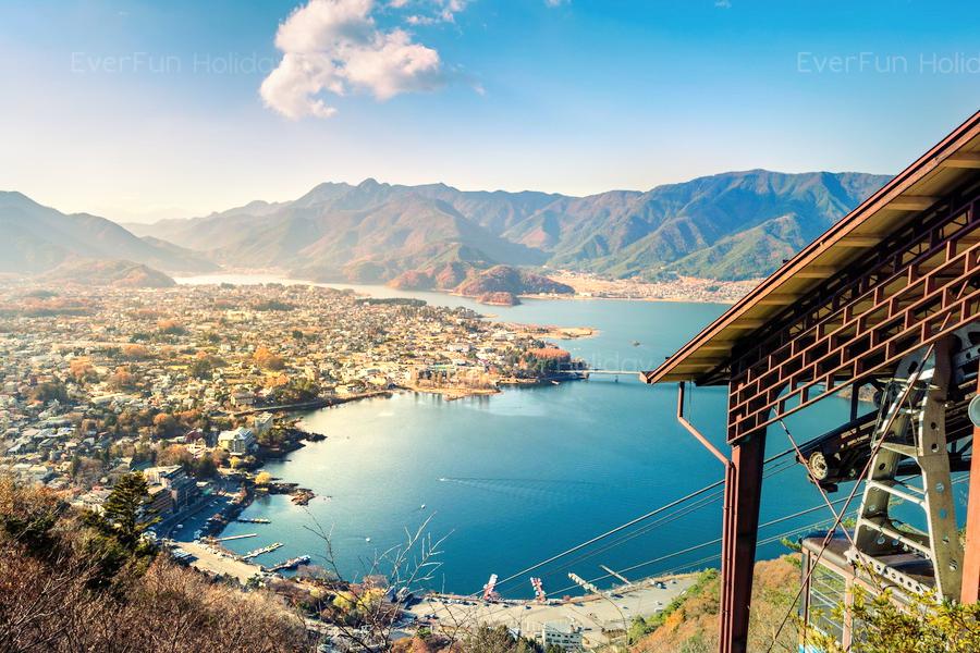Kawaguchiko Tenjoyama Park, also known as Mt. Kachi Kachi Ropeway, is a prominent tourist destination offering some of the most iconic views of Mount Fuji and Lake Kawaguchiko. Its significance lies in providing an easily accessible, elevated perspective that captures the grandeur of Japan's most famous peak, making it a favorite among photographers and nature enthusiasts.
